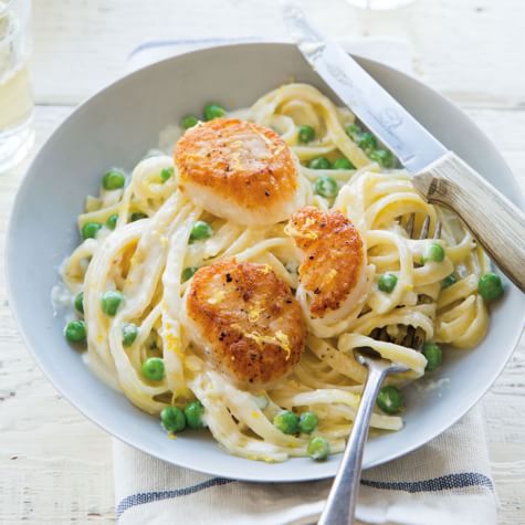 Divide the fettuccine among plates and top each with the scallops. Serve immediately. Serves 4 to 6.