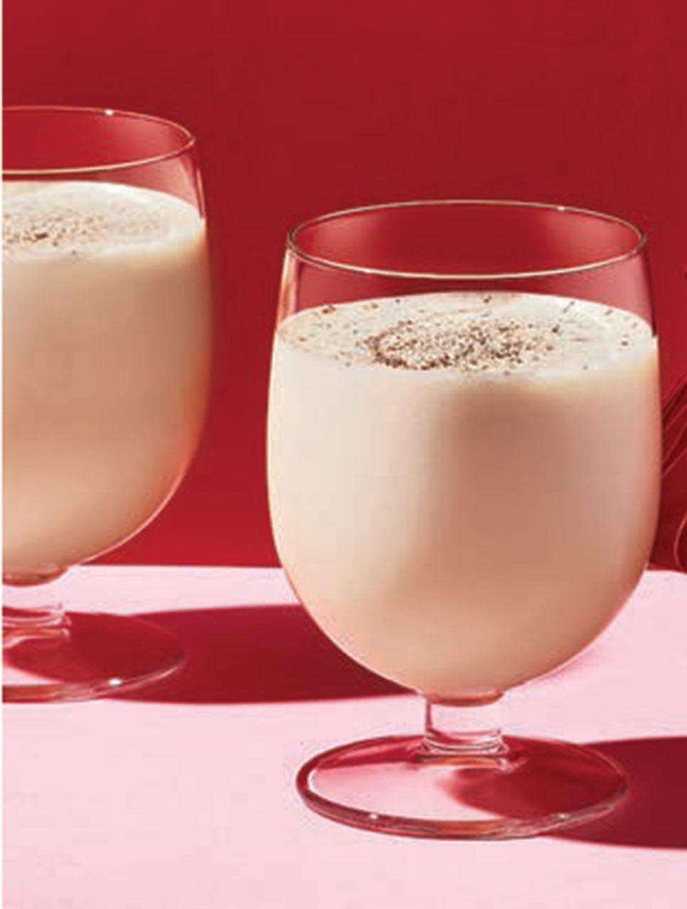 Before serving, whisk lightly to make mixture a little fluffier. Pour 5-oz portions into chilled punch cups or cocktail glasses. Using a rasp, grate a little nutmeg overtop. Makes 12 drinks